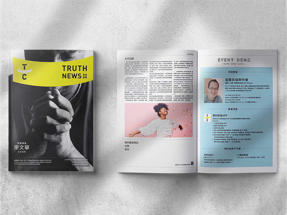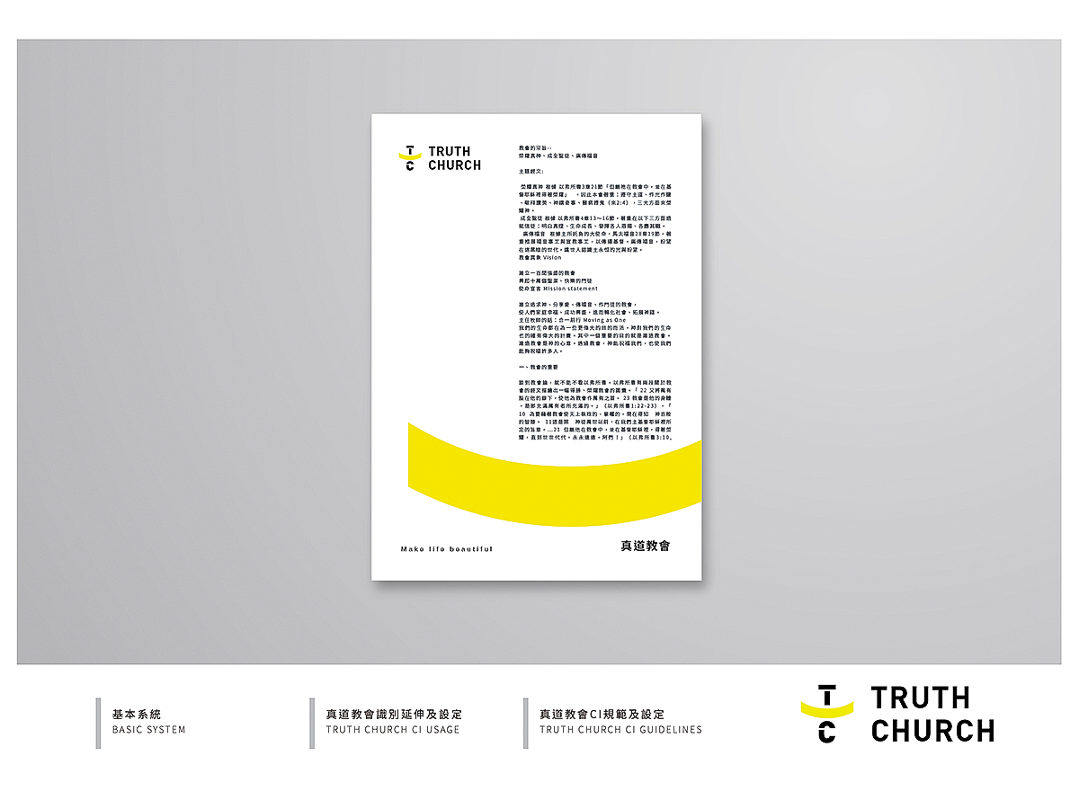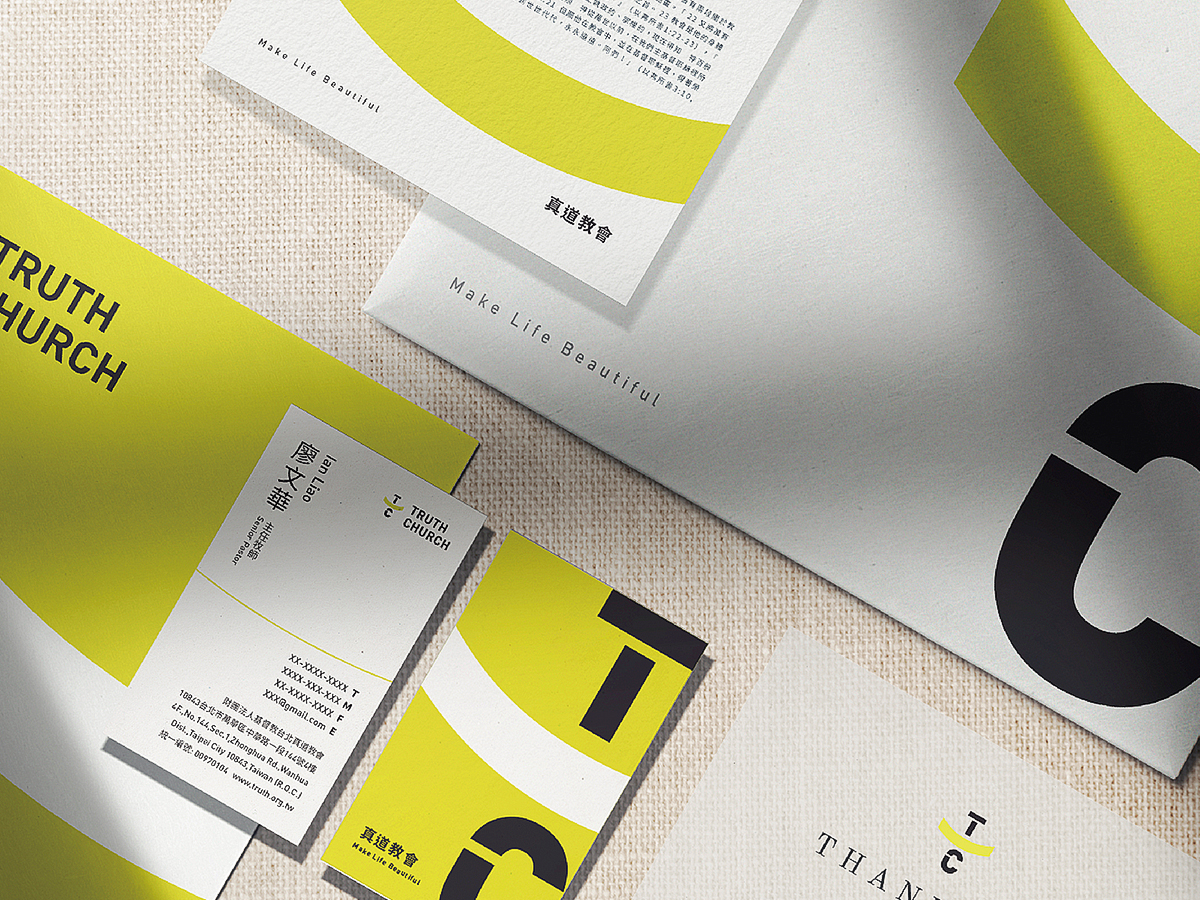 為財團法人基督教台北真道教會提供品牌識別設計,包括標誌、名片、宣傳品等,並為教會其他項目與活動提供創意應用設計。
