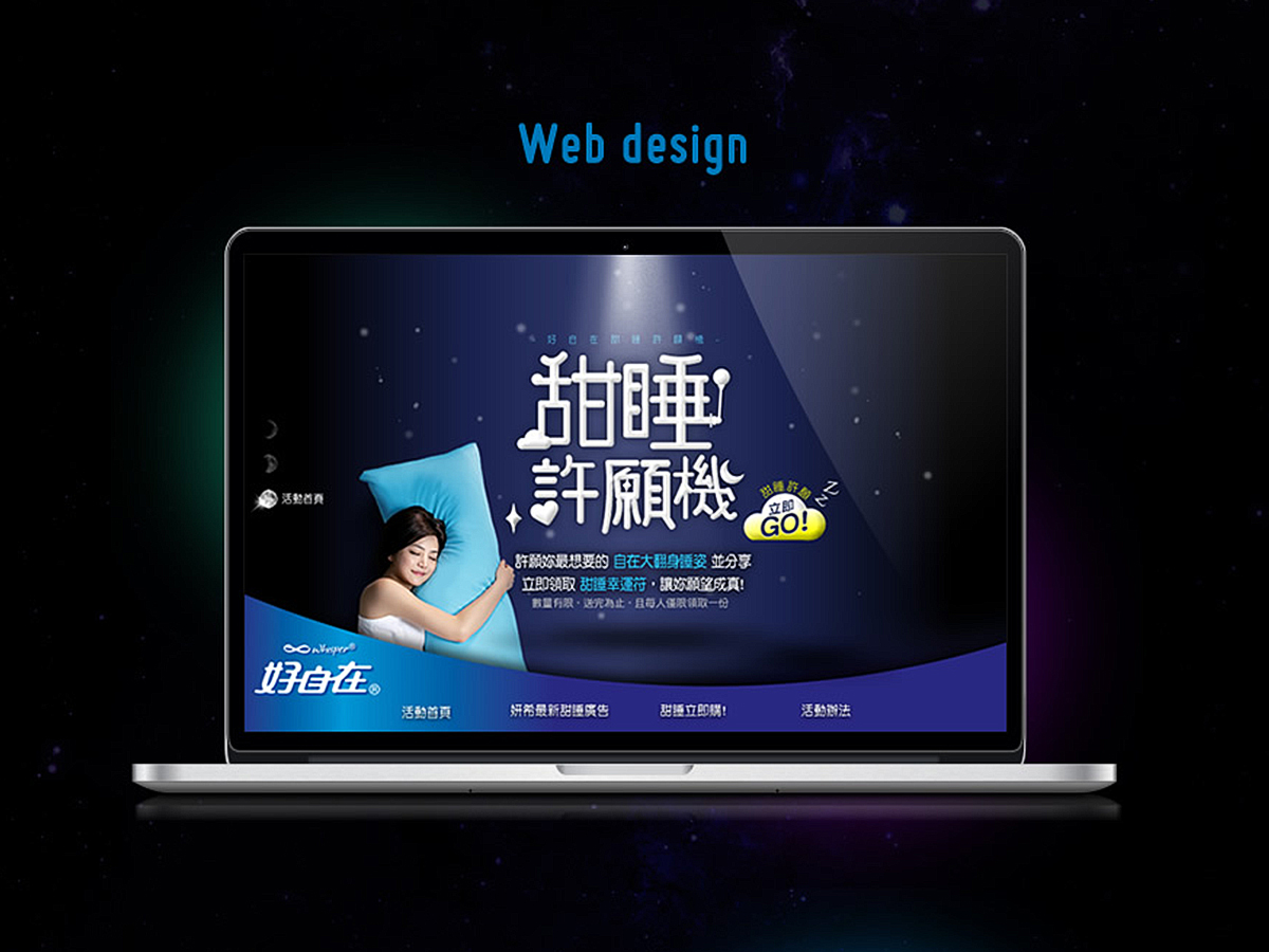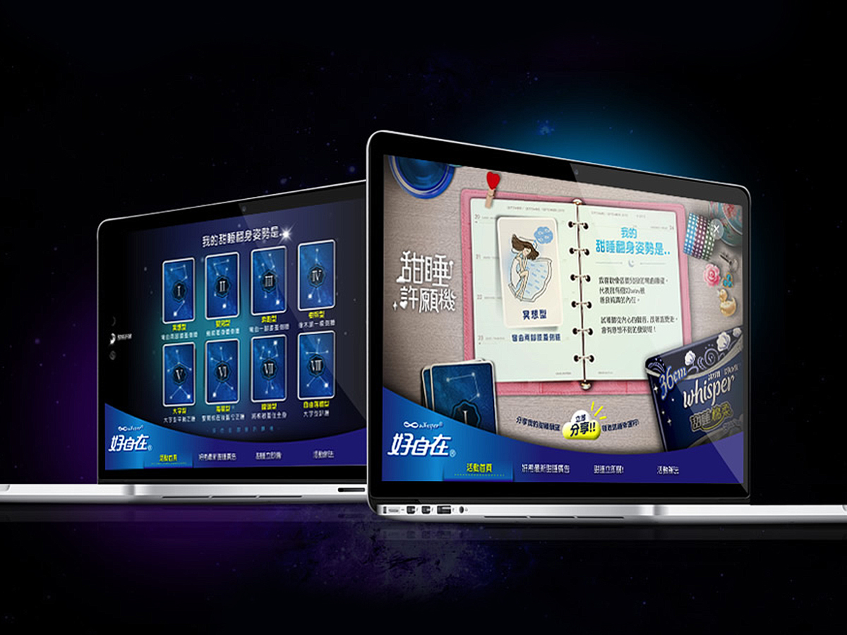 協助P&G旗下女性用品品牌好自在Whisper設計”甜睡許願機”活動網站並規劃和設計媒體曝光露出。
