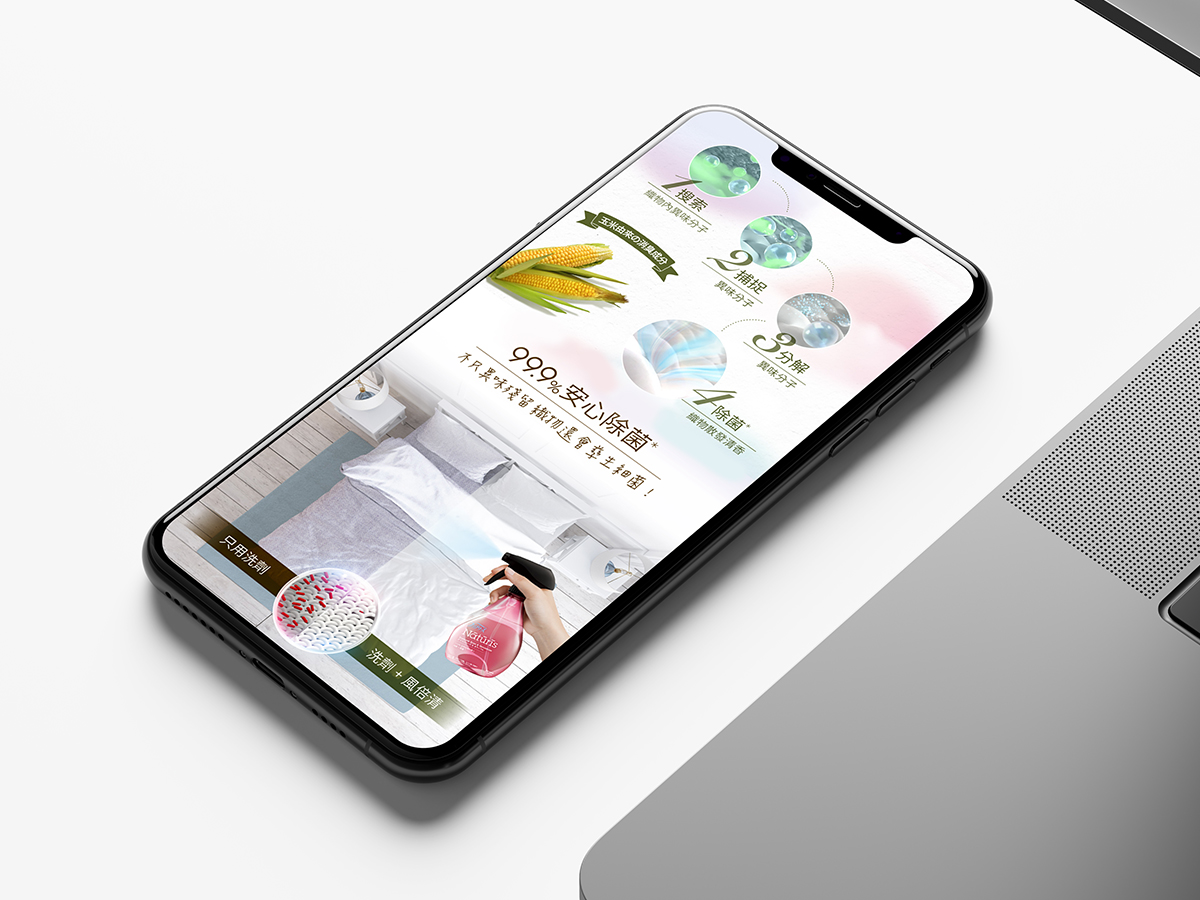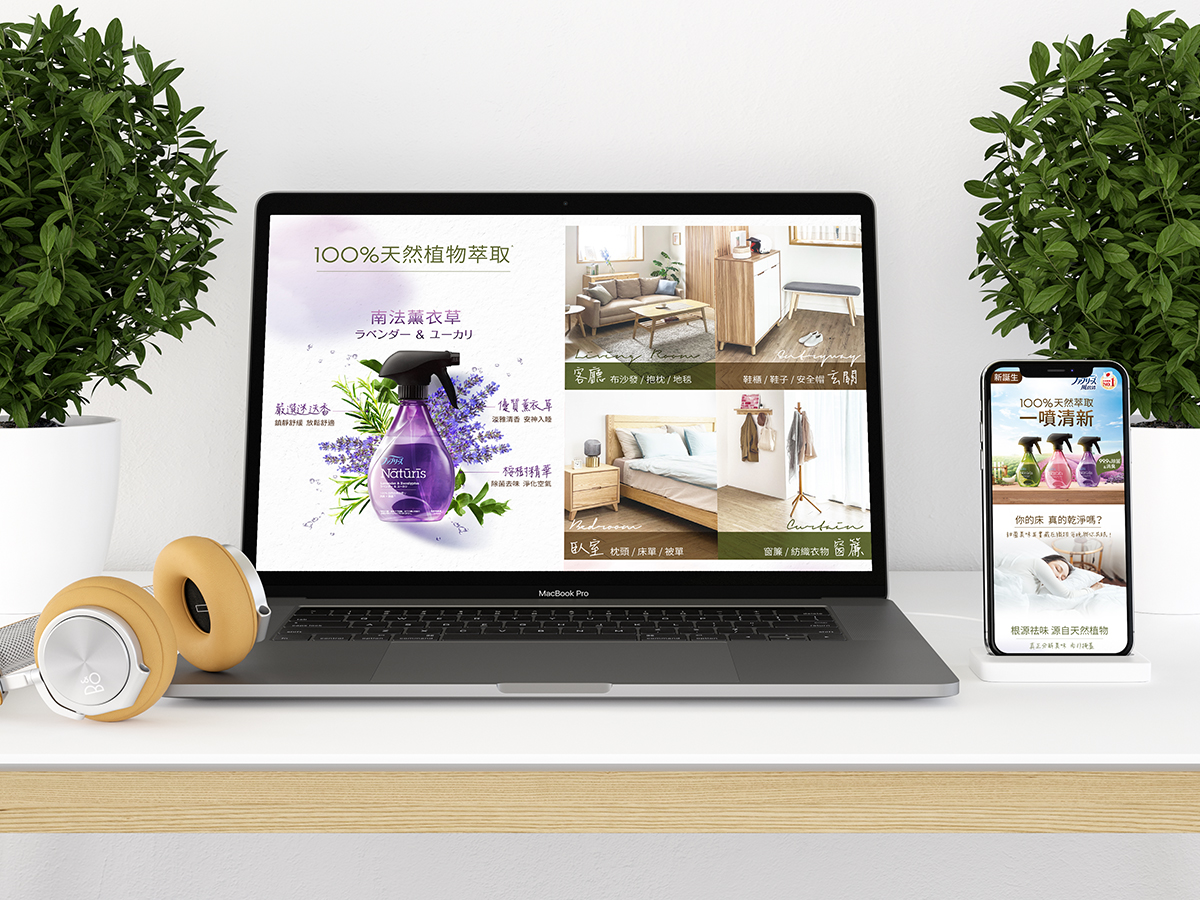 為P&G旗下家庭除味劑品牌風倍清Febreze 的Naturis織物噴霧系列設計電商活動網站