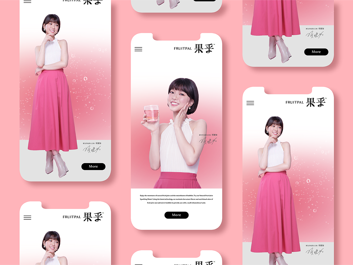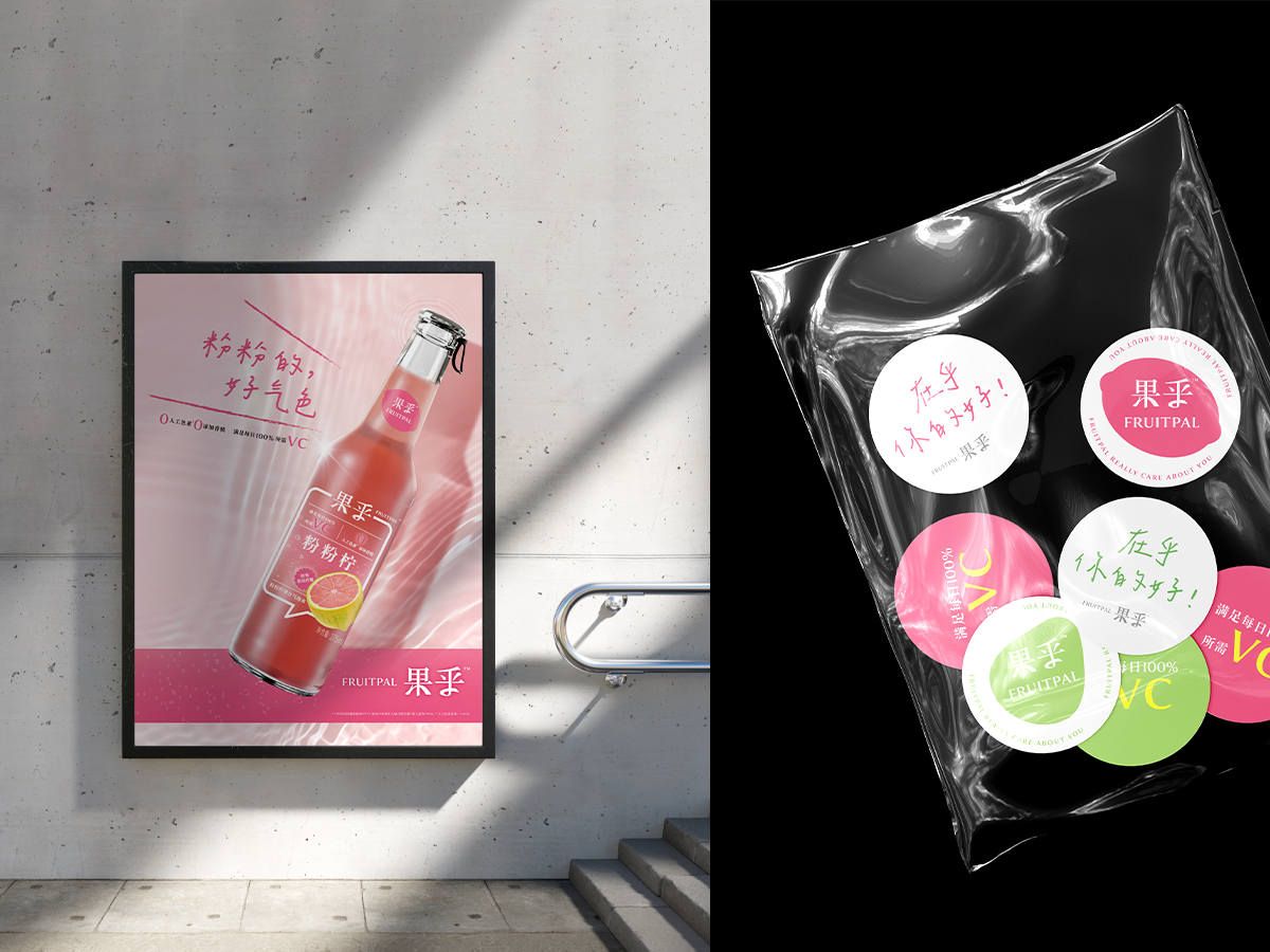 MX 協助了中國全新健康果汁飲「果乎 fruitpal」的品牌創建與上市過程,一路從 Logo、KV 設計到飲品外包裝設計、代言人洽談與平面拍攝等,皆有 MX 的參與。設計以品牌精神「比你更在乎你」為核心概念發想,並考量產品的目標對象和市場,在美感和創意之間取得平衡,並透過設計展現出產品「氣泡」、「清爽」的特色,瓶身設計也呈現能和消費者互動的小巧思,讓喝飲料變成一種有趣的消費體驗。除此之外,MX 也負責代言人的洽談與平面拍攝、人像修圖,用最有效率的方式協助客戶獲取最多可使用之素材,並給出服裝造型等拍攝細節的建議。從第一支「粉粉檸」粉色斑馬檸檬果汁氣泡水,到第二支上市的「柚柚泡泡」柚子口味果汁氣泡水,皆呈現品牌一致性與辨別度,明亮活潑的色系配置,讓產品再通路端貨架上,能一眼被注意到,進而提升品牌認知與好感。