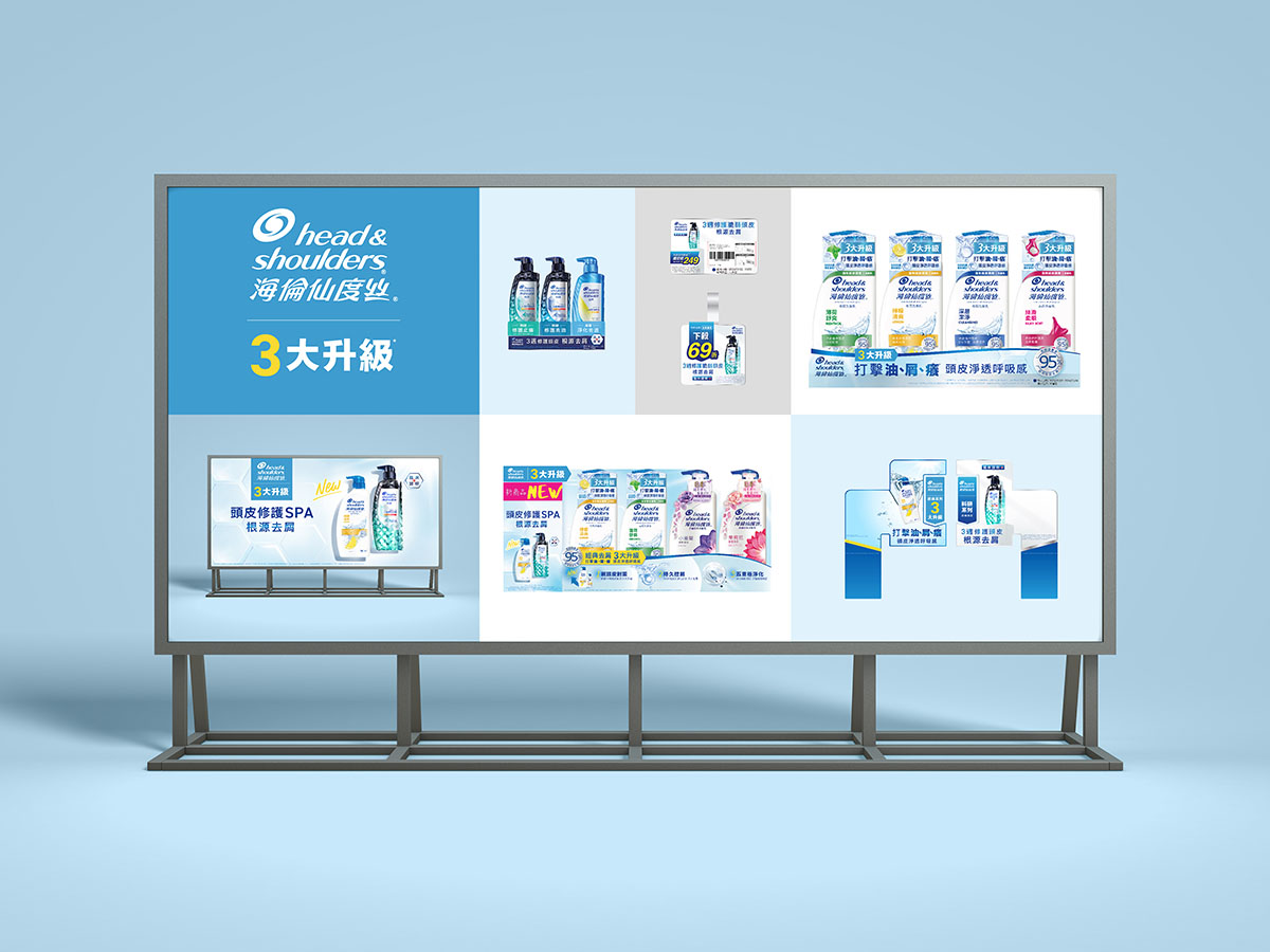 我們長期為台灣髮品市佔第一的品牌海倫仙度絲設計主視覺及POSM陳列,努力為該品牌在賣場上的產品教育及能見度盡一份心力。包括最經典的去屑系列、針對不同頭皮問題的訂製去屑系列、2023年全新上市的頭皮護理 油水平衡洗髮露系列等,均由MX設計主視覺並延伸發展為各式POSM,不僅幫助品牌專業形象一致性的建立,也促進銷售額成長。