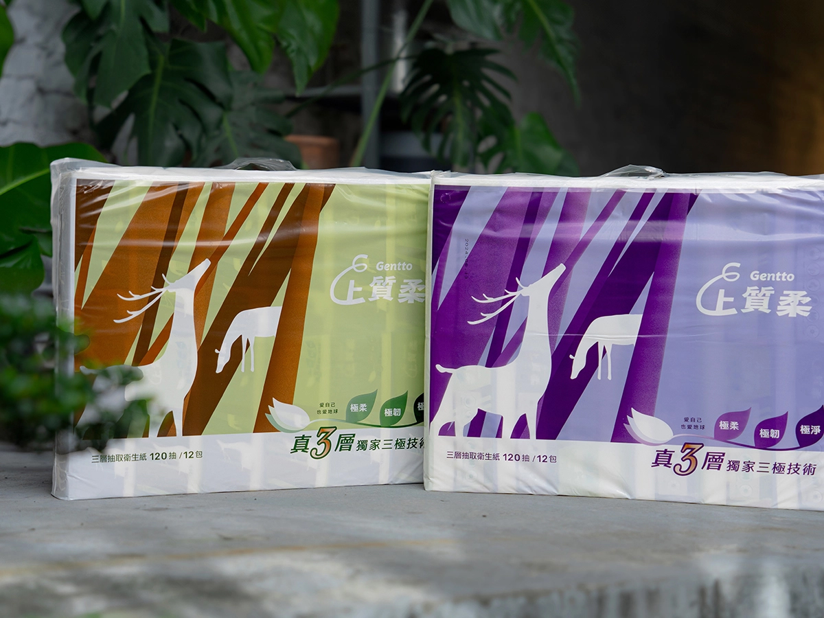 MX 協助家樂福全新自有衛生紙品牌「Gentto 上質柔」,在兩個月的時間內,從品牌命名、定位、 Logo 設計,一路進行到產品包裝、KV、E-content 及影片等宣傳素材製作,到產品正式問世。從各個角度、全方位地協助新創品牌從無到有成功上市。