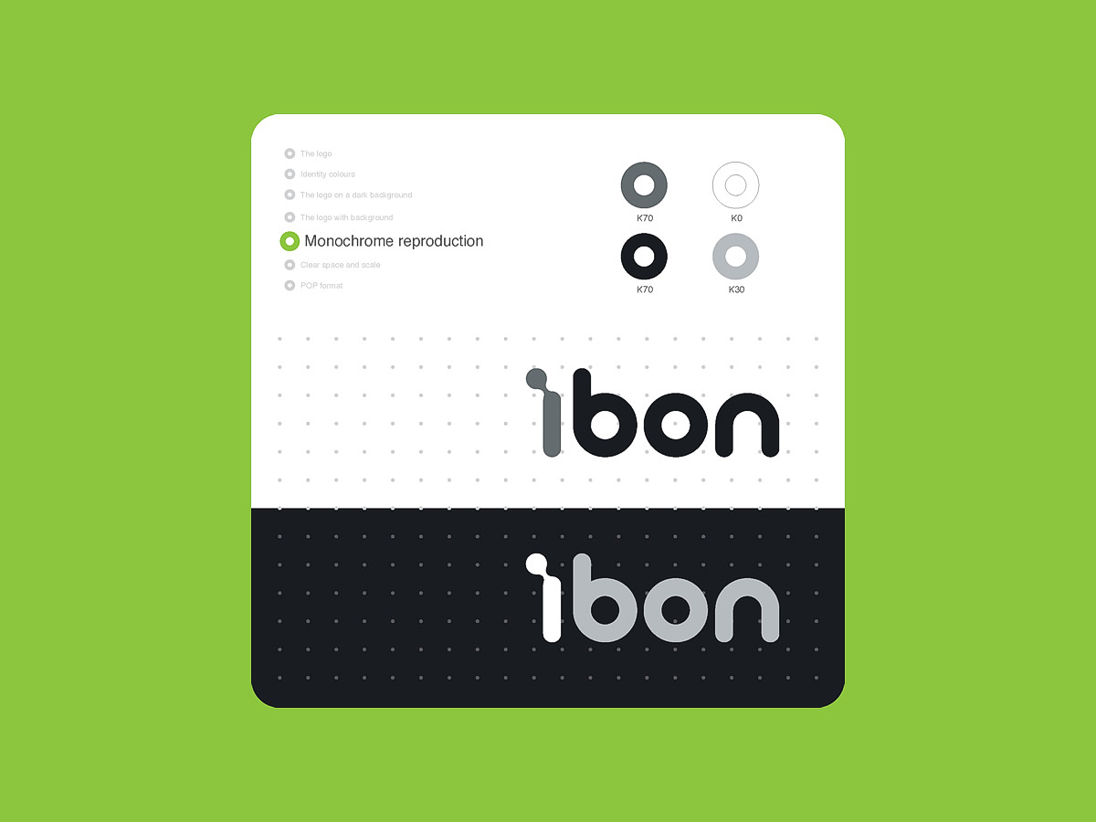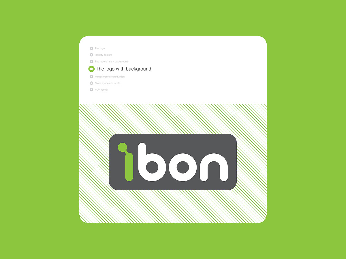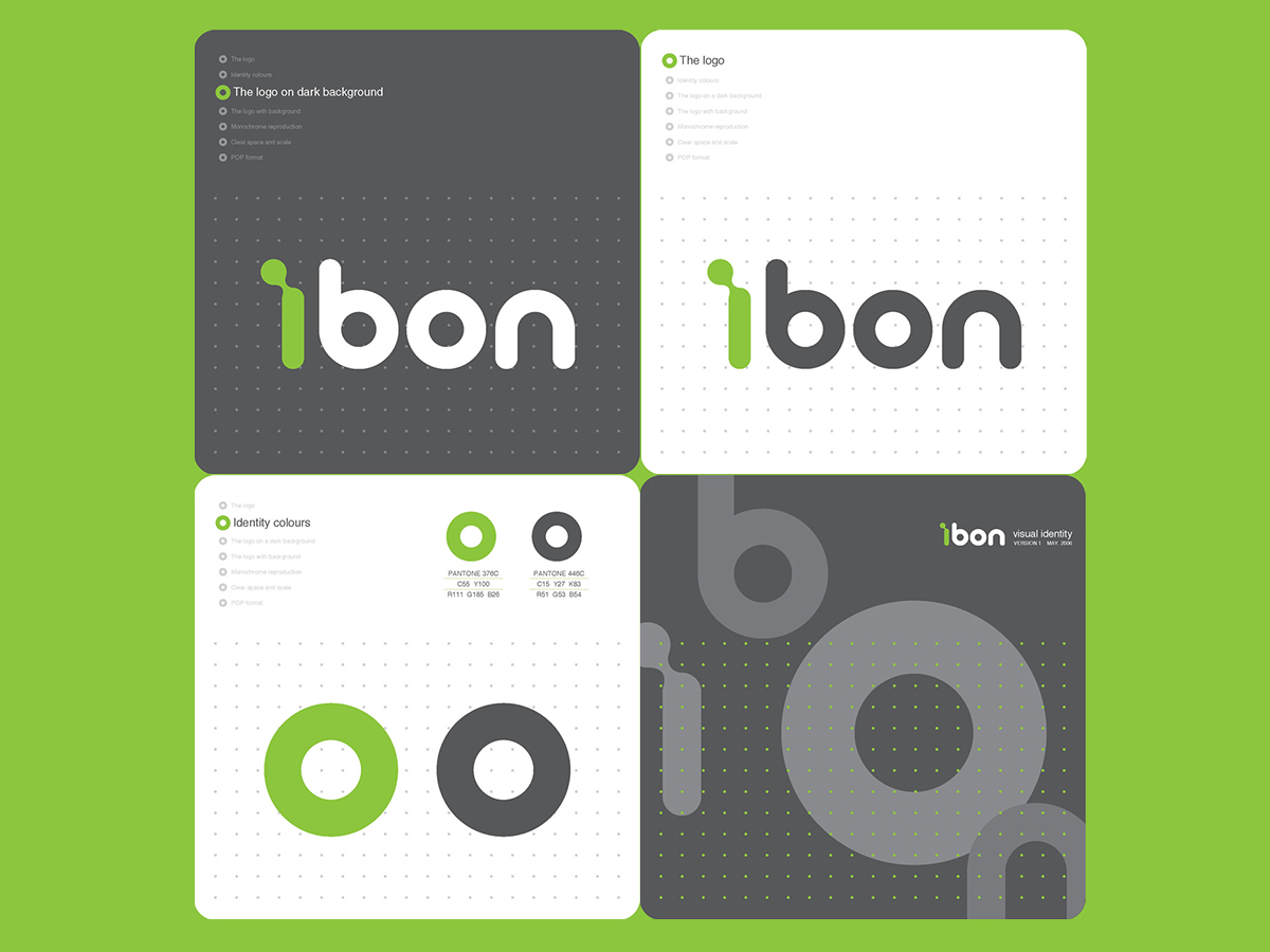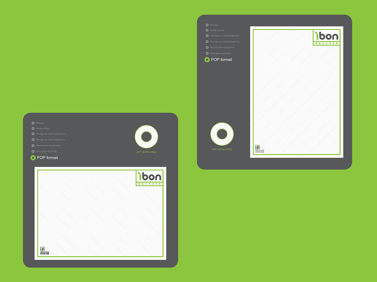 7-11 ibon 品牌標誌設計以字形圓潤的特性延伸,以多個圓圈與點作為品牌辨識的特色,並且以簡約的綠、白、灰三個溫和的主色調,呈現乾淨、專業的形象,同時強調提供人性化服務的特色。透過其時尚、現代的logo設計,吸引了更多年輕、時尚的消費者。