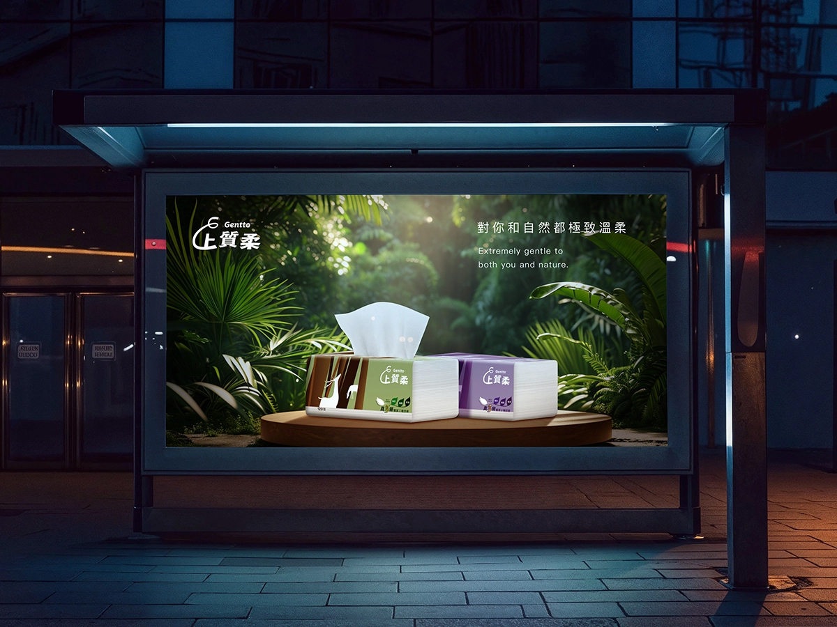 我們從品牌名稱的選擇、品牌定位的確定,到 Logo 的設計,每一步都精心打磨,確保整體形象一致又引人注目。最終,我們成功地在短時間內完成了這項任務,為「Gentto 上質柔」建立了一個強有力的品牌形象,幫助家樂福的衛生紙產品在市場上脫穎而出。