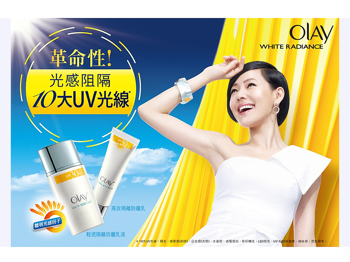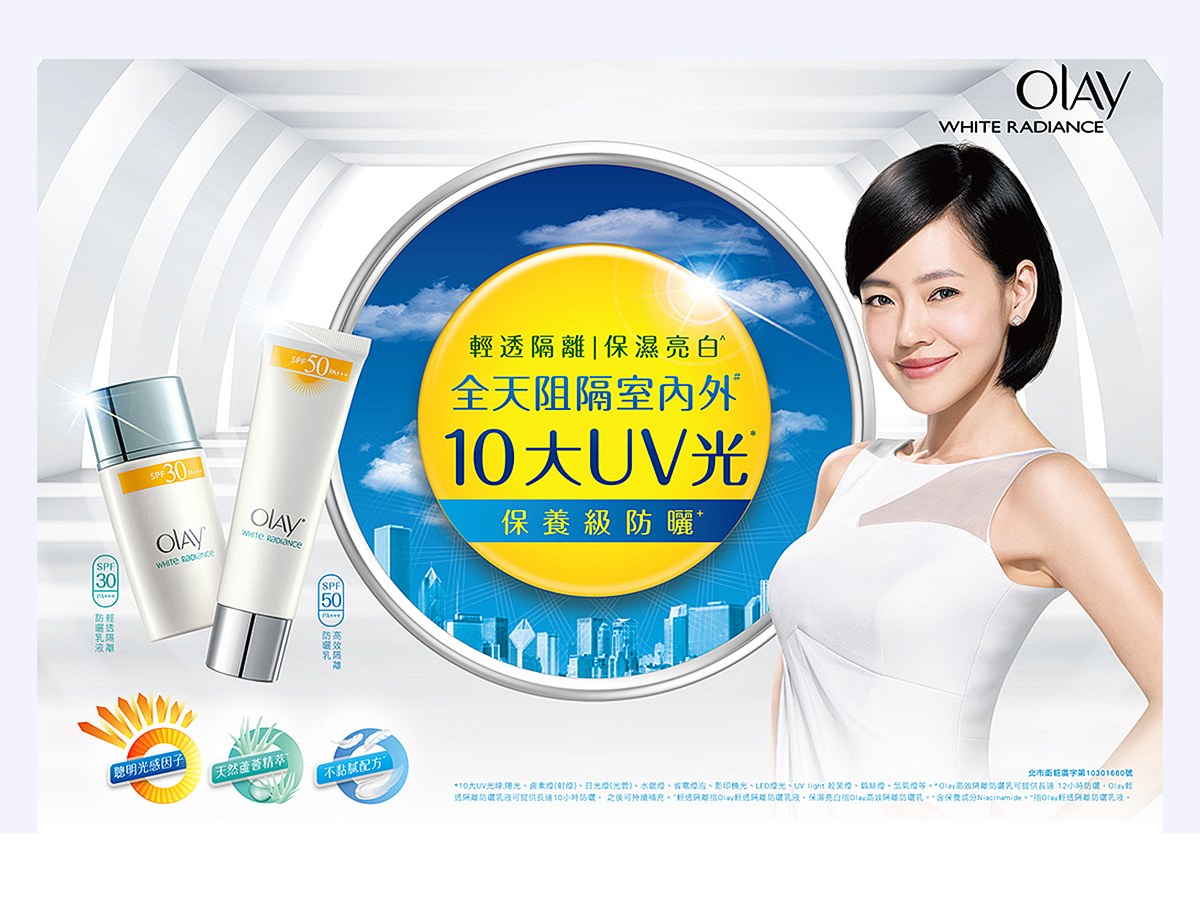 我們自2010年起替OLAY Whitening 系列開發產品主視覺、設計平面廣告及拍攝電視廣告。我們也為了使台灣及香港消費者更有共鳴,邀請藝人小S成為品牌代言人,並產出多種相關視覺設計物。因為該系列的成功設計,也成功的應用設計元素到大陸。
