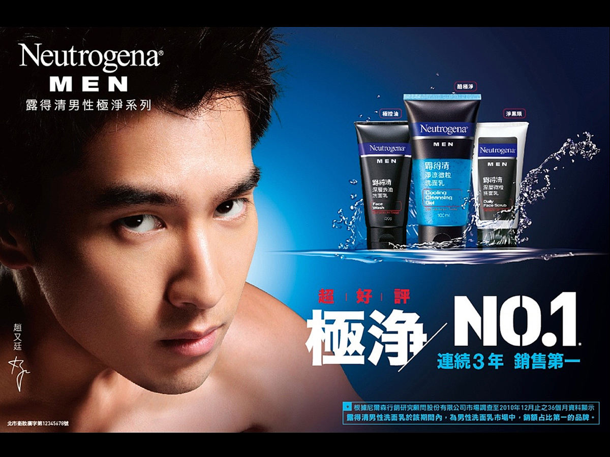 我們為嬌生公司旗下保養品牌如美體主張和露得清設計主視覺,也負責代言人拍攝執行。露得清美白面膜成功的設計概念也應用到中國大陸市場。針對全新露得清男性保養品的誕生,也提供一系列設計及代言人拍攝執行,該品牌成為當年市佔第一的男性保養品。