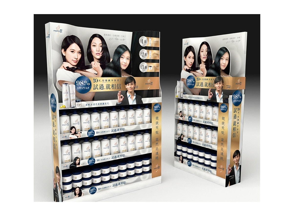 作為 P&G旗下髮品飛柔PERT的合作夥伴持續協助其主視覺設計和銷售最後一哩路的通路陳列設計。