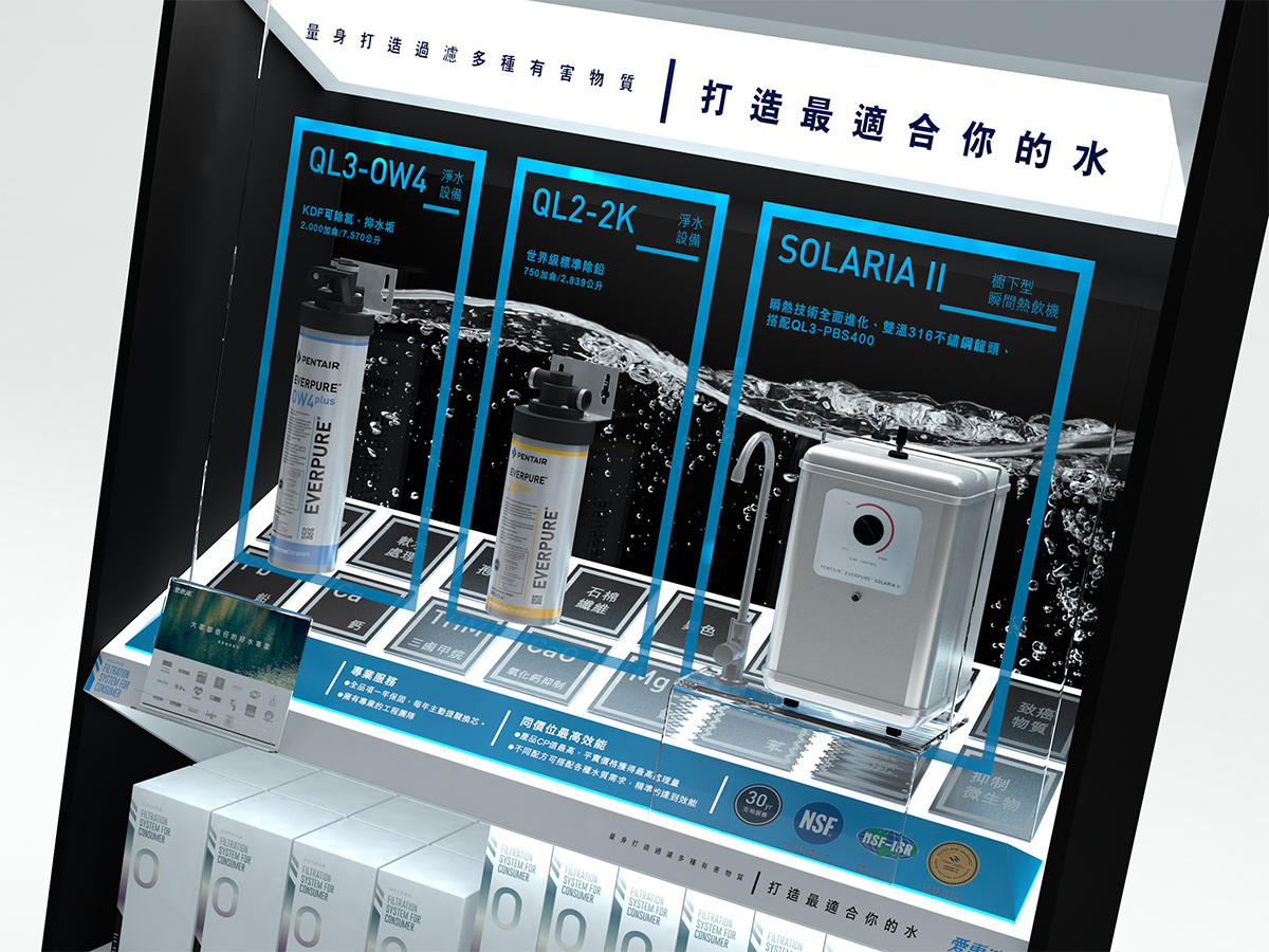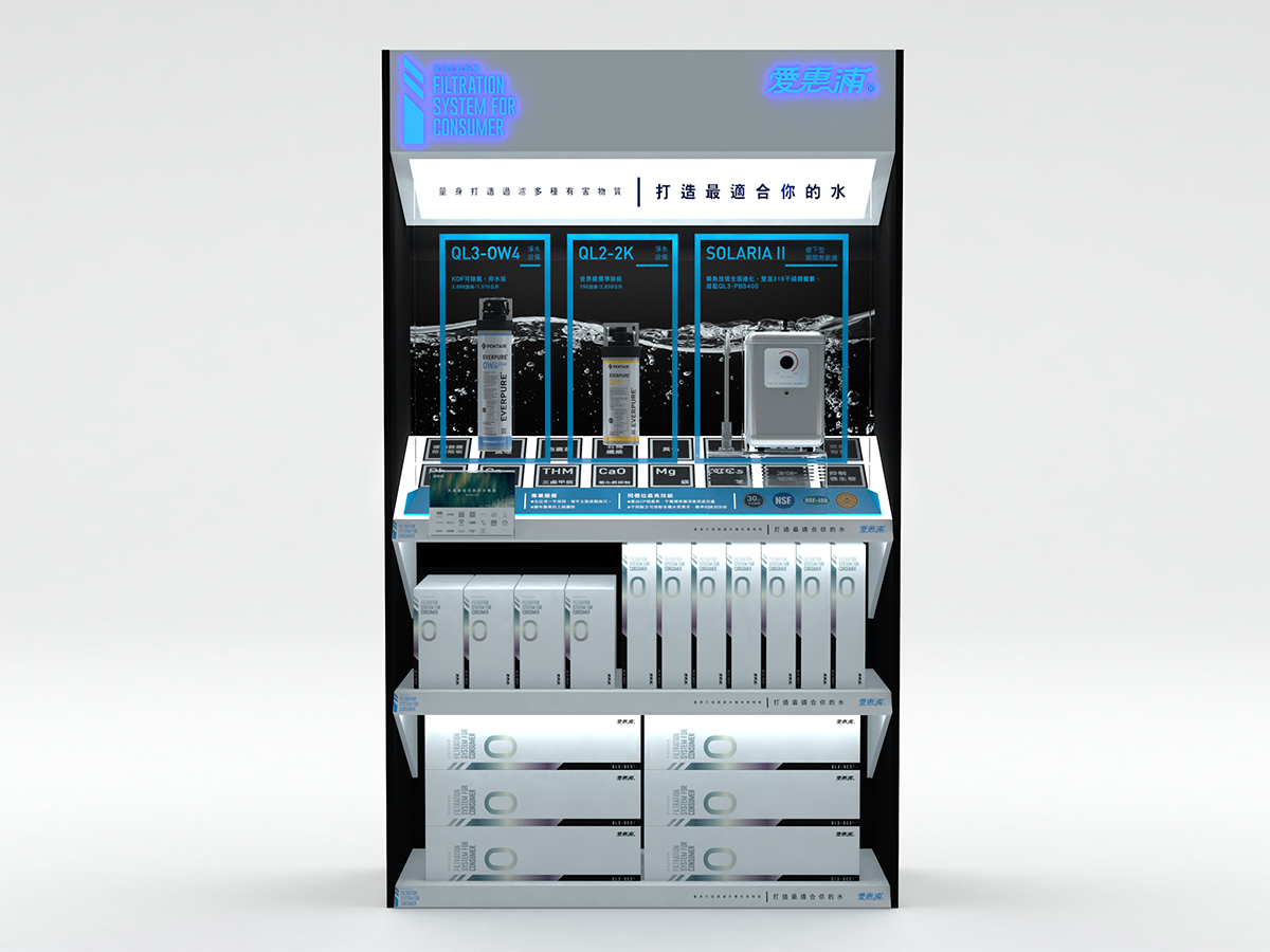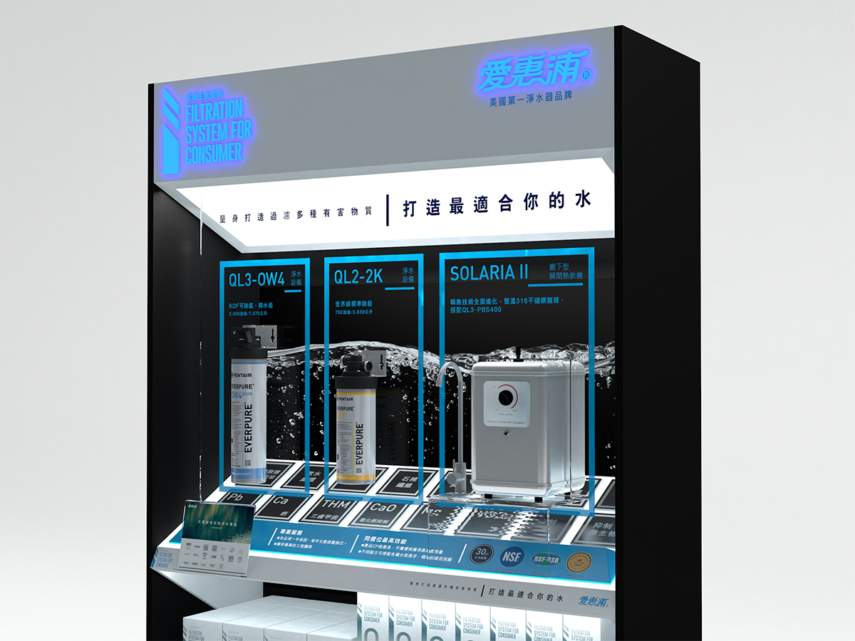 為知名淨水器品牌 愛惠浦 提供賣場燈箱設計和產品介紹陳列設計