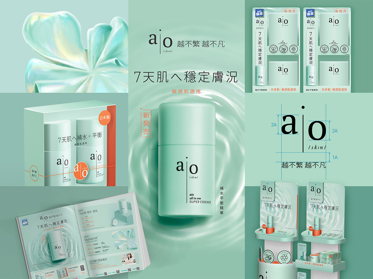為全新保養品品牌AIO提供全方位POSM設計,其中包含產品包裝與各式銷貨陳列設計