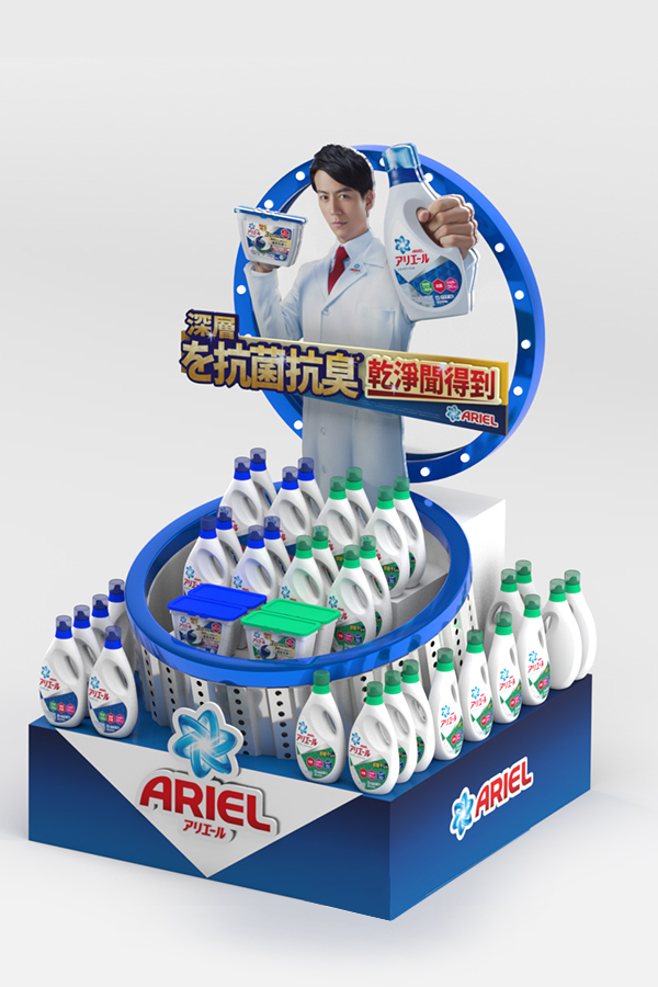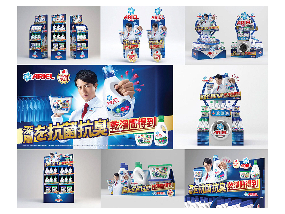 各大通路的陳列部分,客戶希望以有創意概念來呈現這次的主題,並維持Areil日系科技專業感。