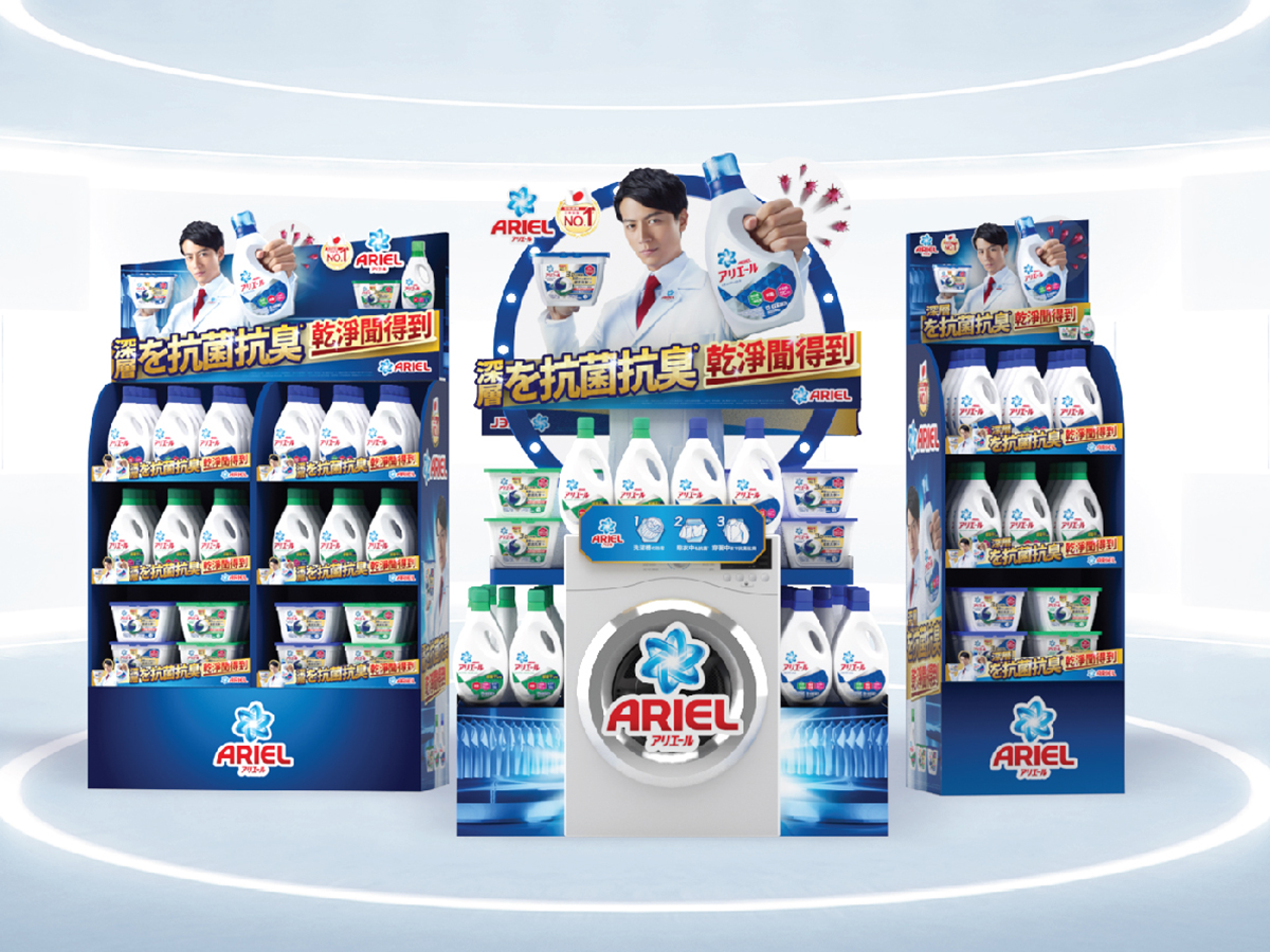 這次合作的Campaign必須星現日系專業感。從Model的選角、KeyVisual色調、陳列物產品的擺放順序,客戶與MX研制出最專業的日系洗衣科技呈現給消費者。