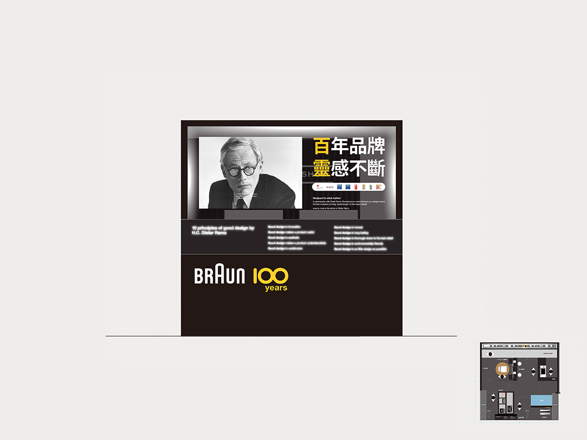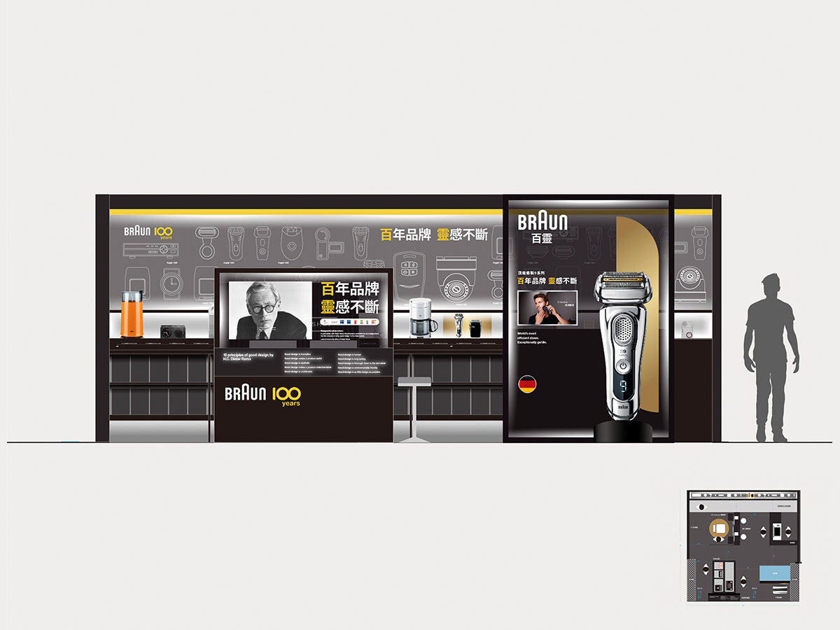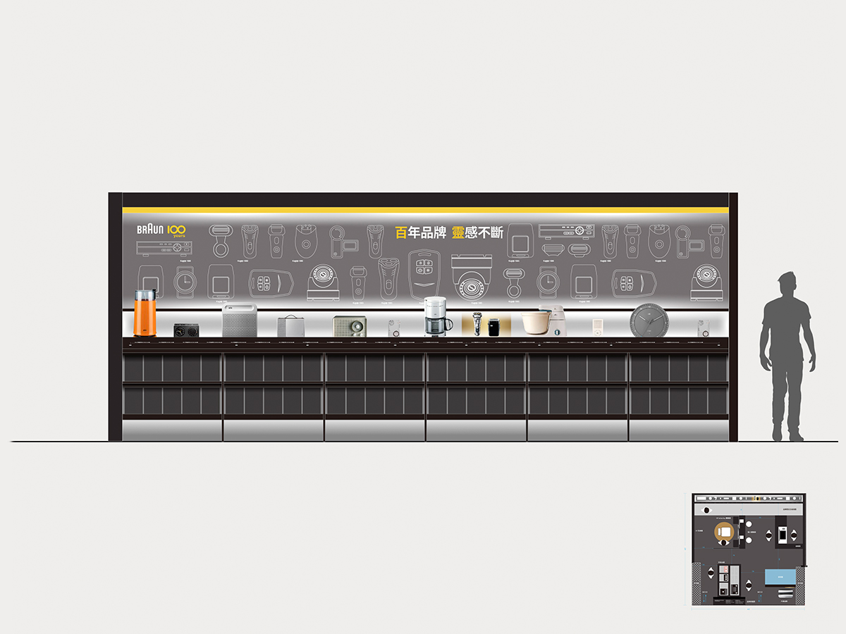 我們為德國家用電器品牌Braun 百靈100週年設計專櫃陳列,充份展示其商品設計演進歷史及詳細的商品概覽介紹。