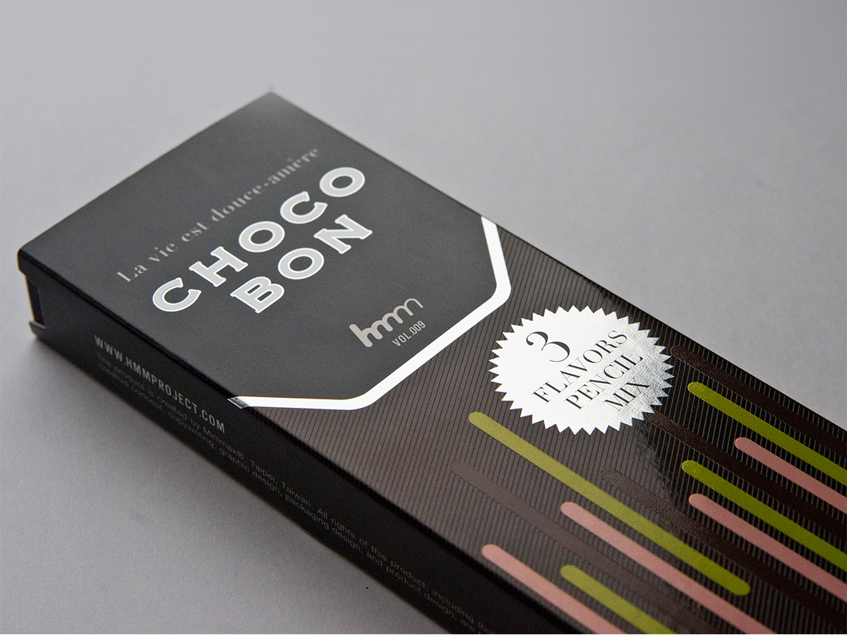 HMM透過設計外觀像巧克力棒的鉛筆,賦予這個書寫工具更多的人性和互動性,同時提醒人們生活是甜的和苦的-巧克力是真實的味道,抹茶是清新且有希望的,而草莓的甜味讓我們在面對困難時充滿愛和勇敢。HMM期待ChocoBon可以抹去所有的苦澀,只留下甜蜜。